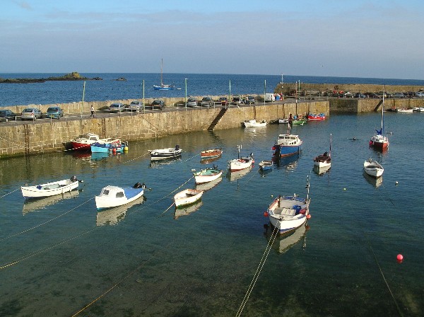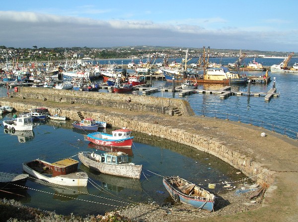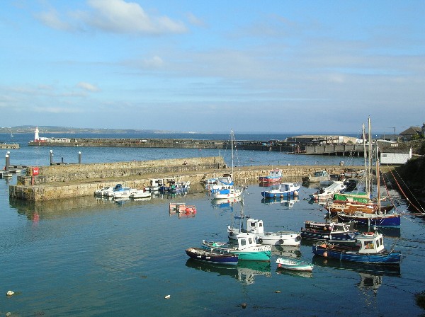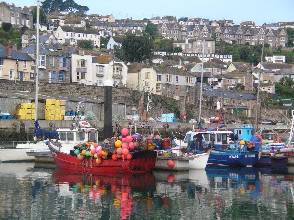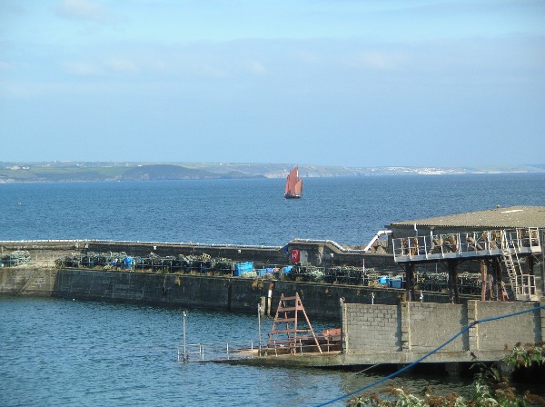 Soon after 7am on Sunday morning, we set off for Newlyn, which we decided to use as our 'half way house' instead of Penzance, which has limited times (tide related) for entry and exit. Newlyn is very much a commercial port, used extensively by fishing craft, with no dedicated facilities for the yachting community, although we did have access to water and electricity. The following pictures are of Newlyn harbour, and that of the fishing vessel piled high with coloured fishing pots is included especially for Julia, who is the world expert at spotting fishing pots!