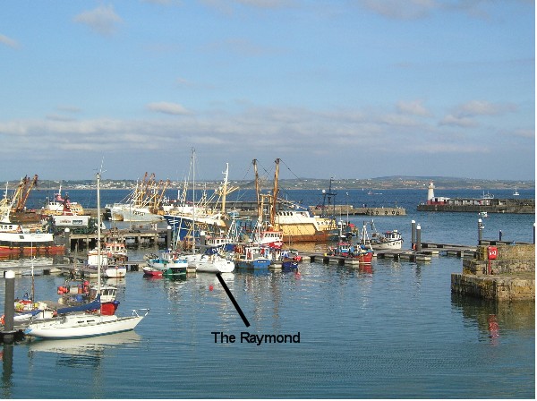 'The Raymond' was handed over to us on Saturday afternoon in Port Pendennis, Falmouth, and our food loaded on board. The swing bridge giving easy access to the pontoons was temporarily out of order, but the Maritime Museum very kindly allowed us access by car to the top of the ramp - saving a very long walk with the trollies of supplies and luggage.