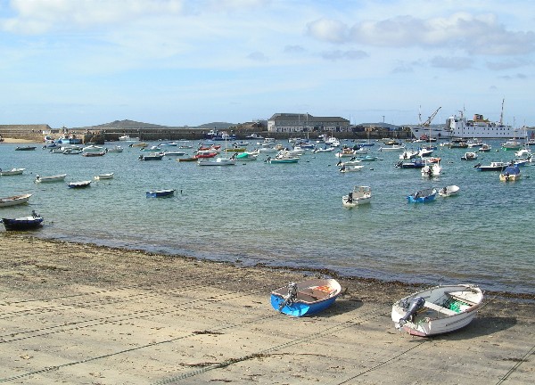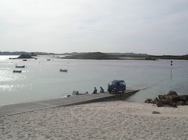 And this is the small jetty where our boat will arrive to take us back to St Mary's. When we first arrived at St Martin's, the tide was so low that there was barely enough depth of water for it to berth at the very end of the jetty, but now the water is deeper, and the skipper's job much easier.